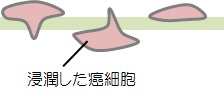 上皮組織で発生したがん細胞は基底膜を破壊することで浸潤し、正常な組織に転移していきます。浸潤過程においては、細胞の基底膜への接着、細胞外マトリックスの分解、細胞移動などが段階的に進行します。