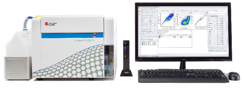 フローサイトメトリーとは、細胞にレーザーをあてて蛍光シグナルなどを検出する事によって分析する手法です。多数の細胞集団中の一つ一つの細胞の様々な特性を、同時かつ高速に解析および定量することができます。下記の解析例をはじめとする様々な解析を実施可能です。