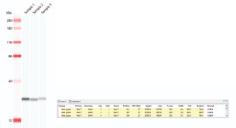 弊社では、自動ウエスタンブロッティングシステムとして、Simple Western System Jess (Protein Simple社製) を導入しています。シンプルウエスタン解析は、ウエスタンブロットに代わる新しいタンパク質発現解析法であり、従来の煩雑で時間がかかるウエスタンブロットによるタンパク質発現解析を完全に自動化することを可能としました。さらにウエスタンブロットに比べ定量性が高く、微量サンプルからも検出できます。そのため、お客様の貴重なサンプルを有効に活用しつつ、短期間で結果をお届けします。